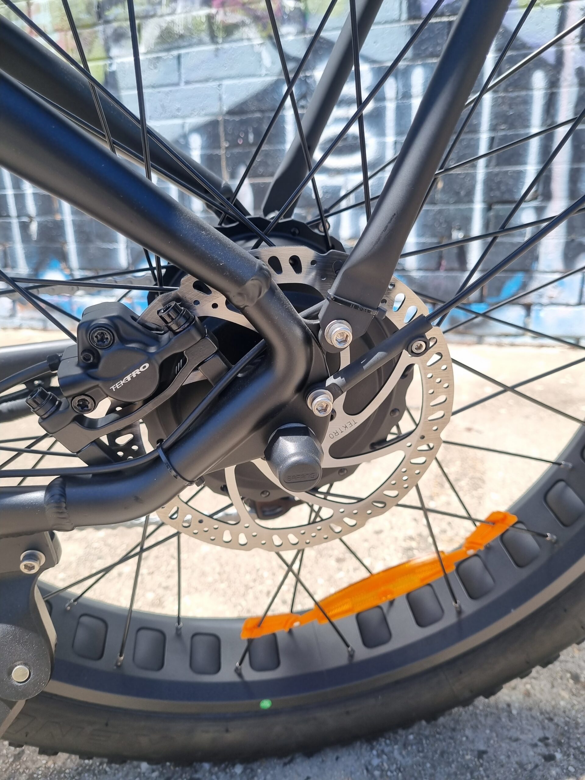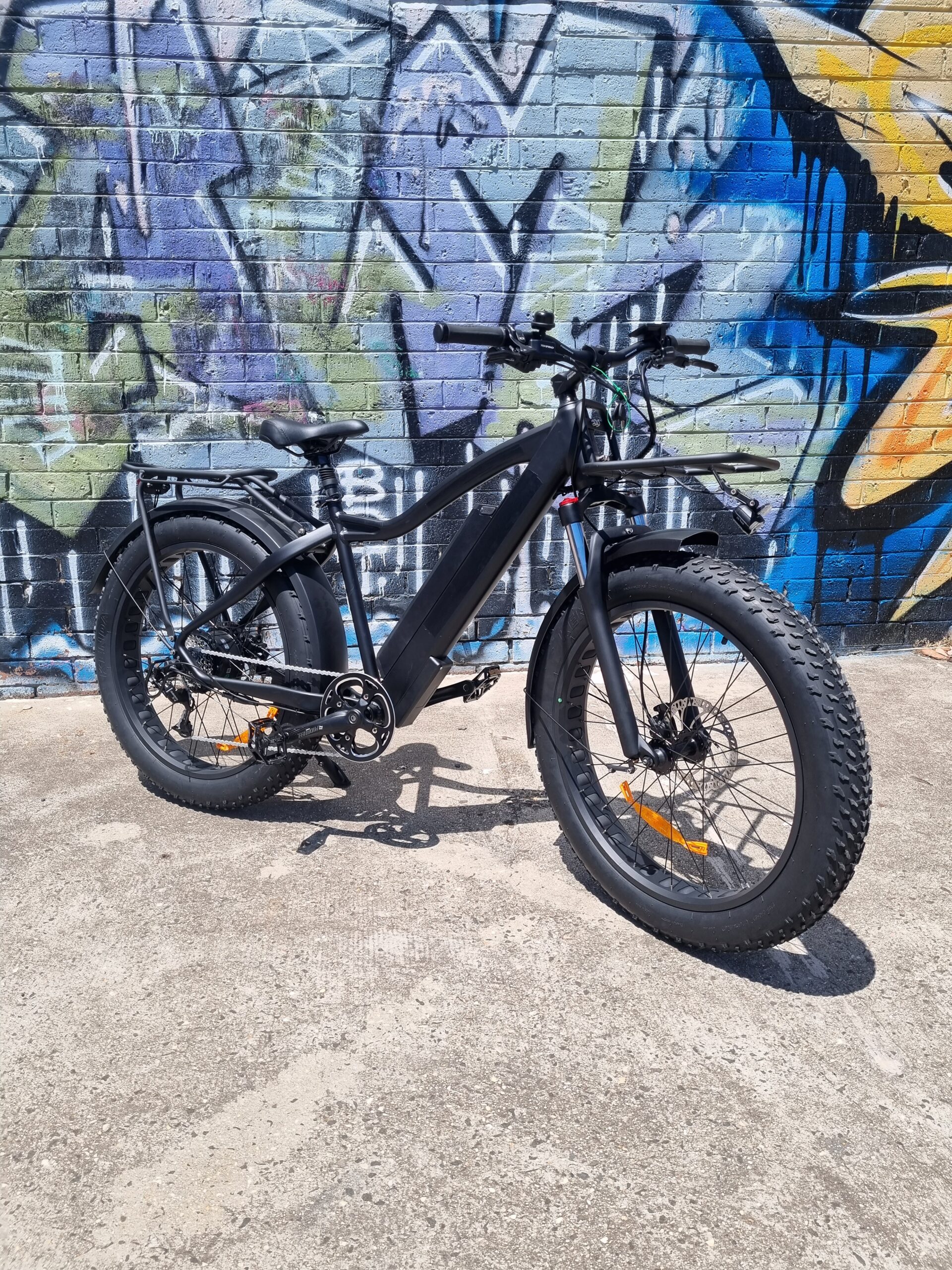 Our appropriately named Brutus has a Bafang 750W rear hub motor coupled with a 17.5ah 48V slim line battery.