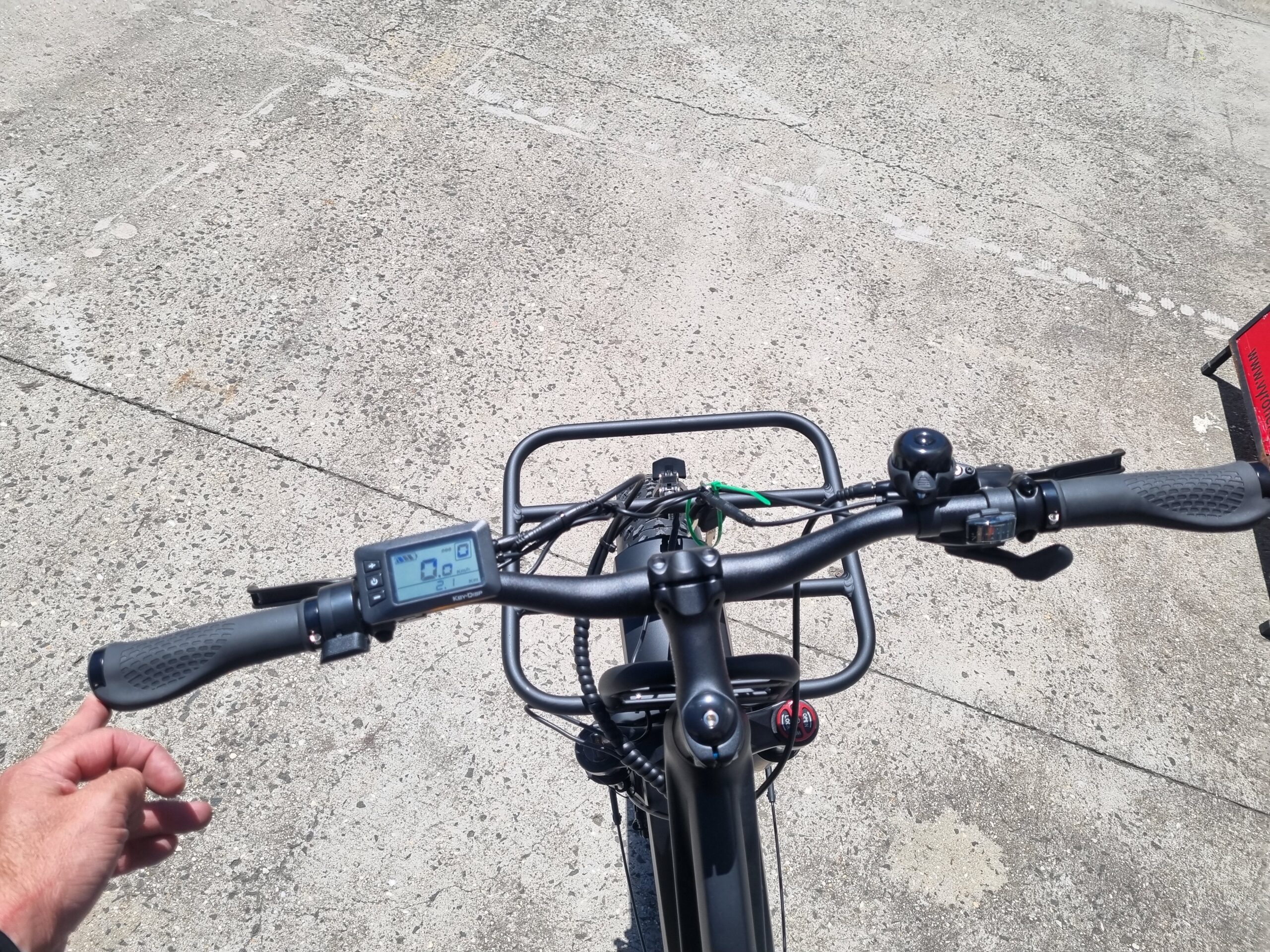 It also includes a full speed throttle, digital display, USB port, Tektro hydraulic brakes, 8 speed Shimano Altus drivetrain, front suspension, mudguards, suspension seatpost and rear pannier rack.